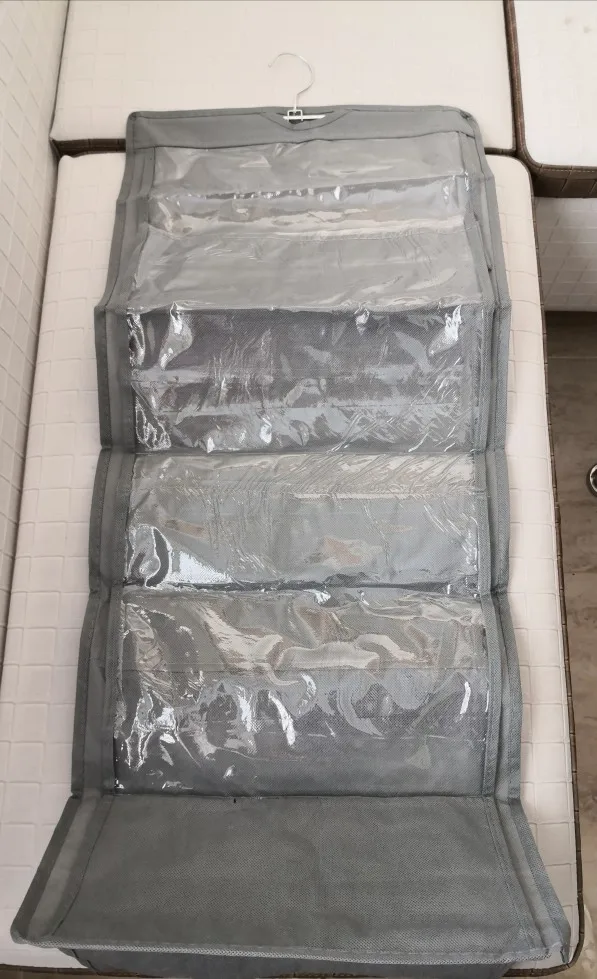 With non-woven fabric and clear PVC materials, your bags could fit either horizontal or vertical and is easily seen. The best part is there's no assembly required! Just hook over the clothes rod, right alongside the clothes hangers. And it doubles as a convenient hanger rod divider!