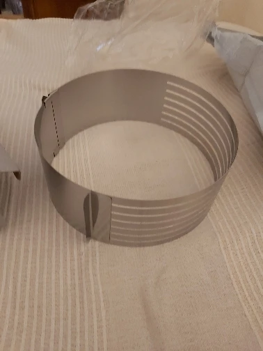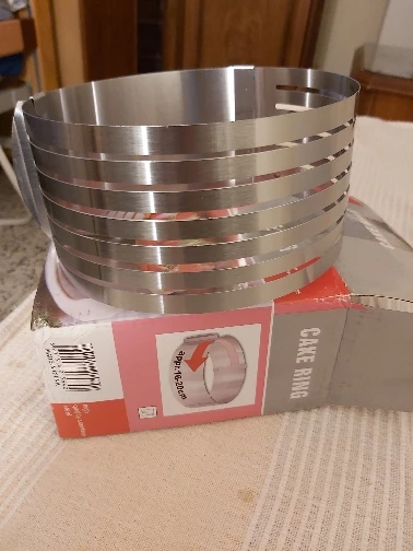 Adjustable This adjustable cake ring accommodates cakes from 23-30cm.